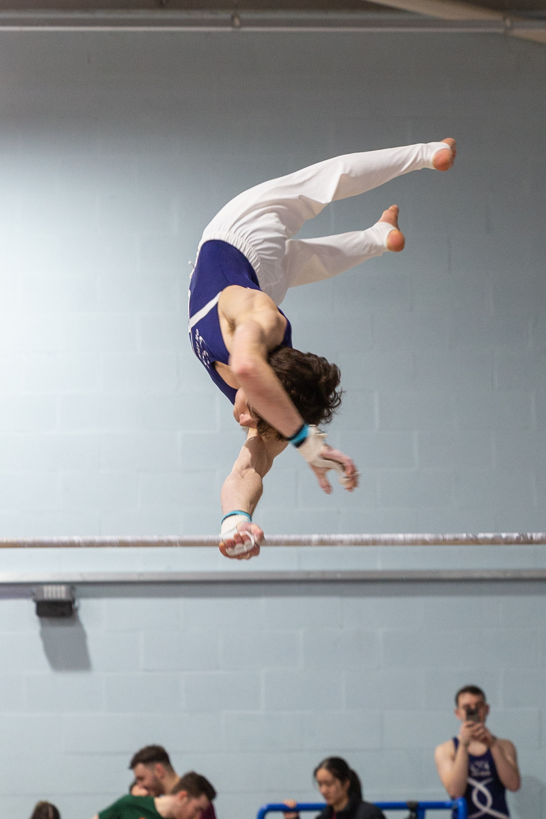 A: Of course, the inevitable moment of intimately patching up a teammate’s hand with tape and plasters, after he sustained a rather large blister on parallel bars!