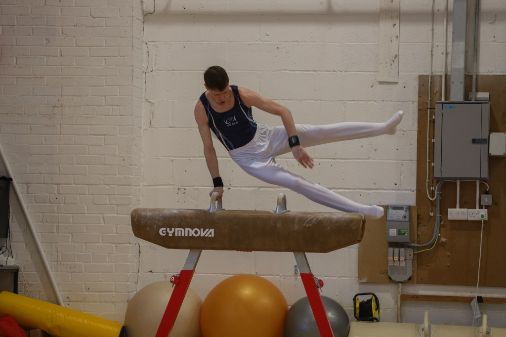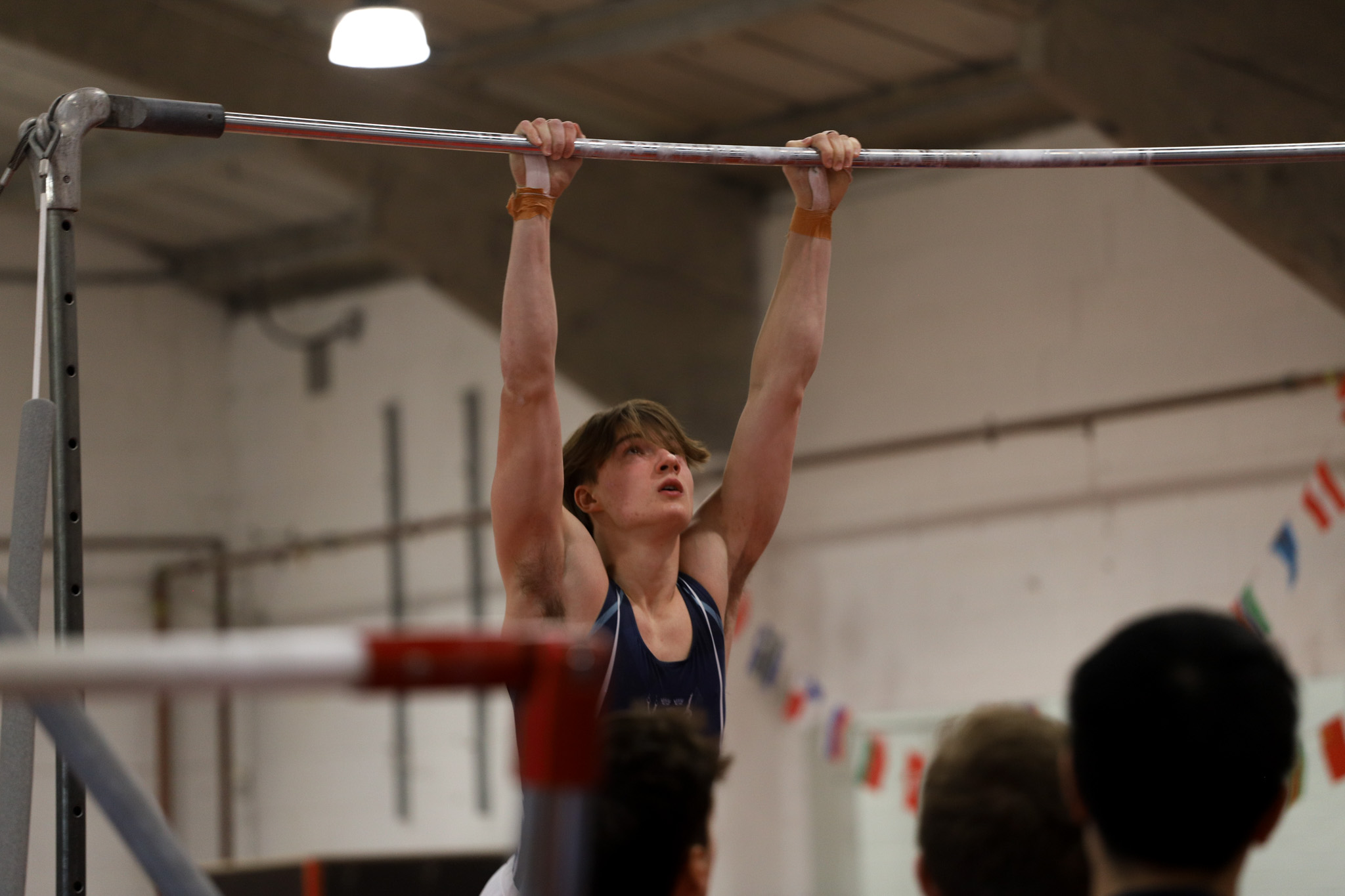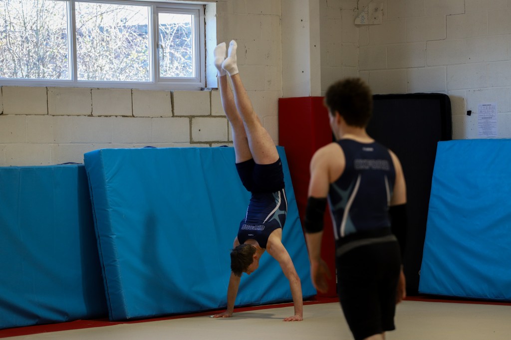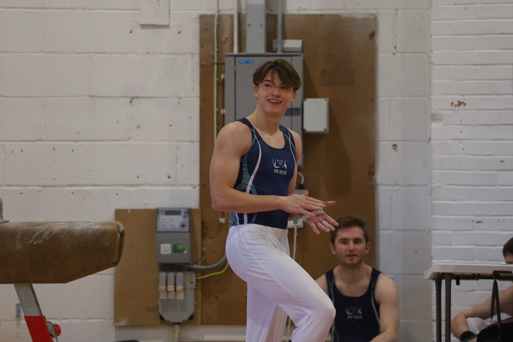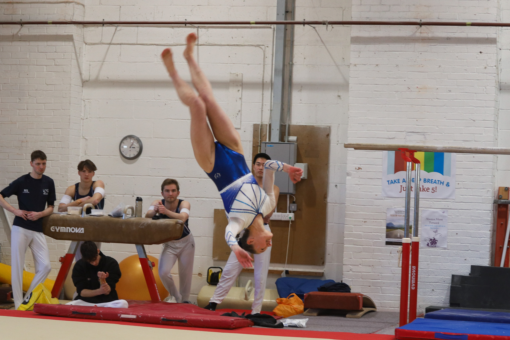 More excitement was to come in the afternoon for MAG. MAG B executed solid performances on parallel bars, with Joseph making his debut on this apparatus. On high bar, Alex’s giants came as a nasty surprise for Cambridge, while Tom became extraordinarily tangled in the bar after a back hip circle, much to the team’s amusement. Meanwhile, MAG A were on vault, with jawdropping straight tsuks performed by David and Max Kendall. MAG A finished off with clean parallel bars routines and high bar routines – after an intensive high bar crash course given by Lucy the week before! Max Kendall concluded the day by sticking his double back dismount on high bar, earning him an eyewatering score and cheers of celebration from his teammates!