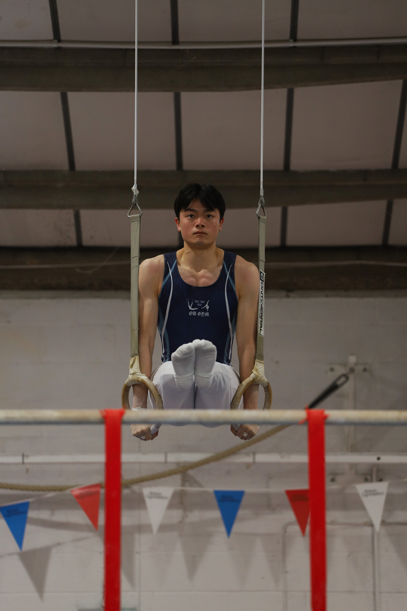 At the same time, MAG B were gearing up for rings. Solid performances were delivered across the team, notably with Akum debuting his first rings routine! Jasper’s intensive shoulder-stretching regime throughout the year paid off with an impressive display of shoulder flexibility culminating in a brilliant score.