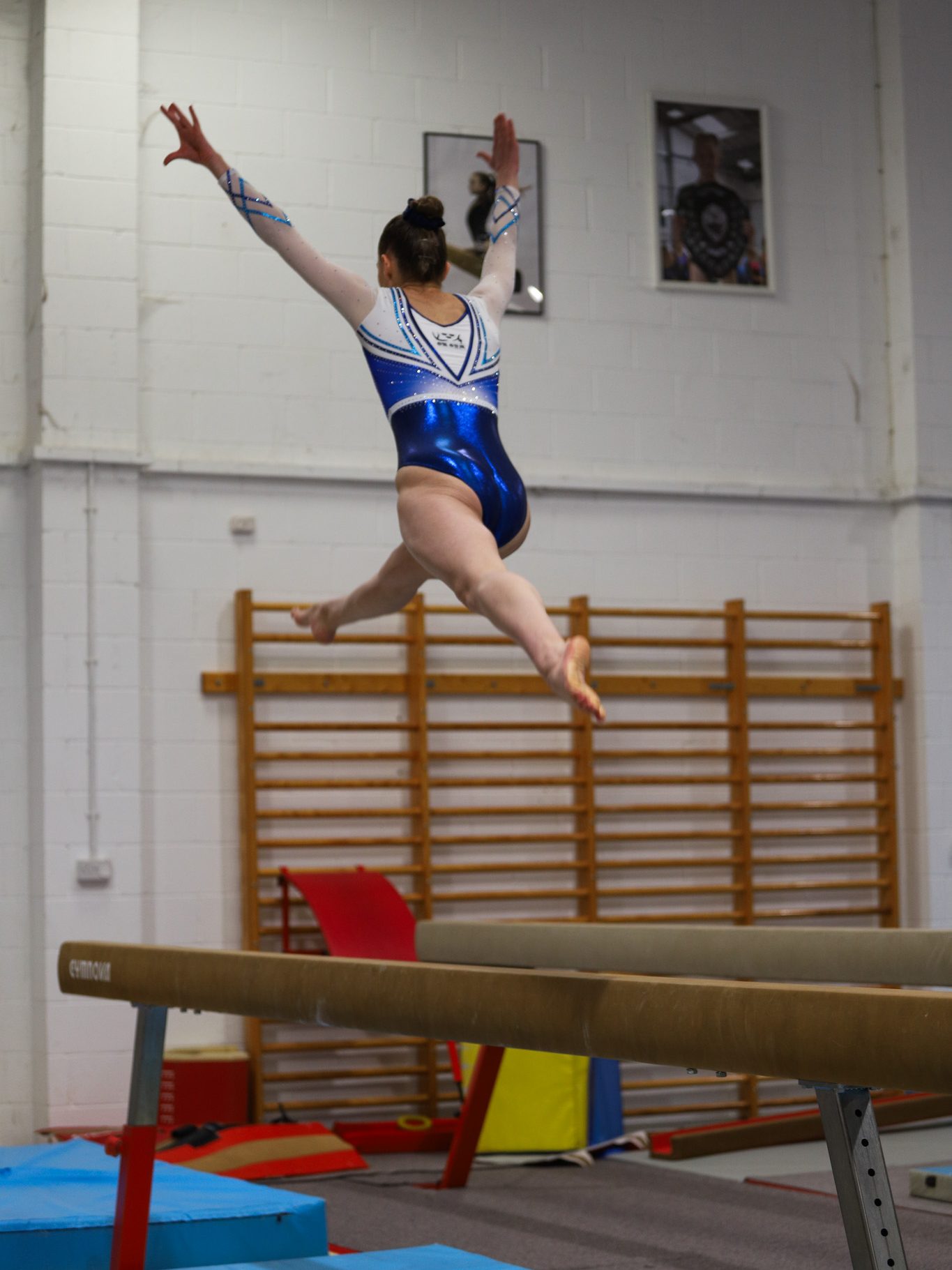 WAG B were then over to floor. Tanya’s powerful tumbles impressed everyone, and Beth’s Michael Jackson floor routine is always fun to watch! Emma showed off her new choreography with a set of very clean tumbles as well!
