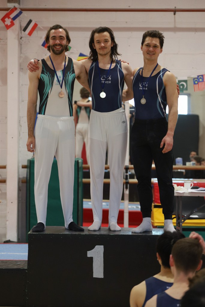 Oxford MAG was also expecting a close competition with Cambridge and was hungry for a win. MAG B was up first on the pommel horse, represented by Adam, Alex and B team captain, Jasper. Alex obtained a massive score for the team, despite being drafted at the last moment! Jasper followed suit with a squeaky clean routine, and Adam nailed his performance as well.